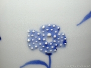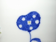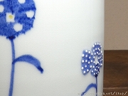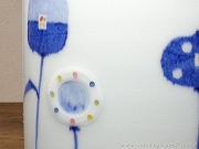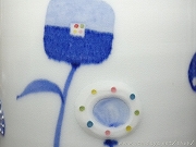 白磁に呉須(藍色)の染付に、イッチンという技法で表面の絵柄に凹凸が施してあります。