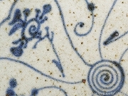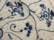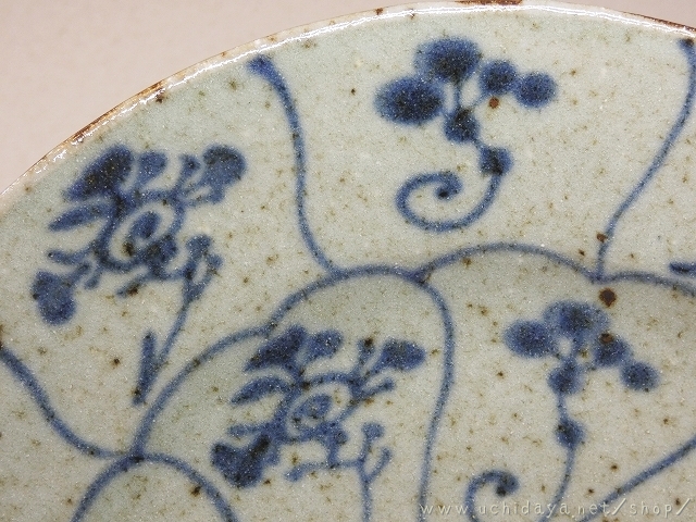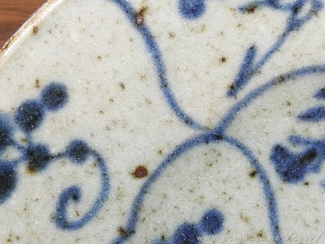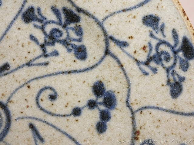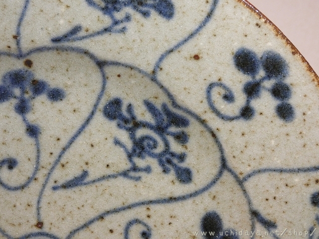 赤砥土に呉須でなずなの文様を描いた上に透明釉をかけたものです。
