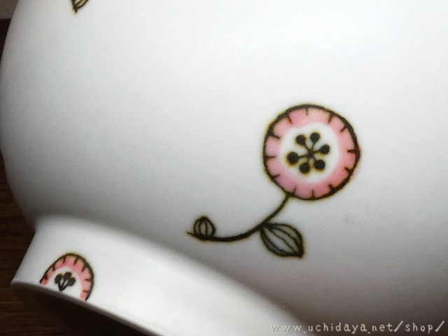 絵付けは(丸花朱)の文様をモチーフに描かれています。