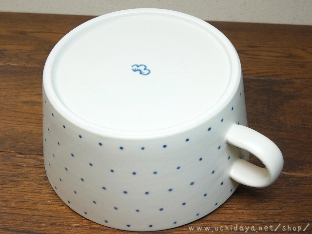 砥部焼 すこし屋 角スープカップ (呉須ドット) (内田屋通販)