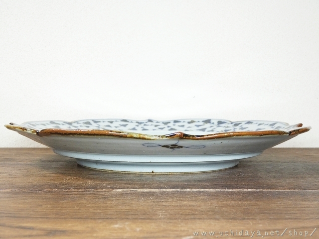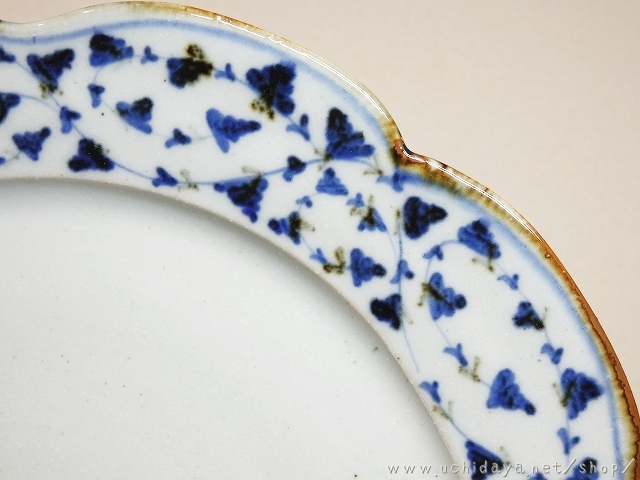 砥部焼 陶房遊 7.8寸輪花皿 花唐草 (内田屋通販)