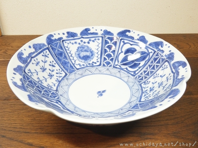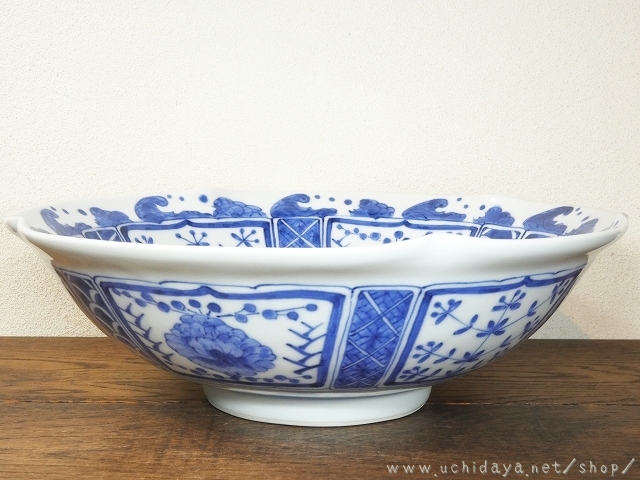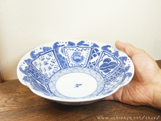 砥部焼の陽貴窯さんの輪花鉢 芙蓉です。