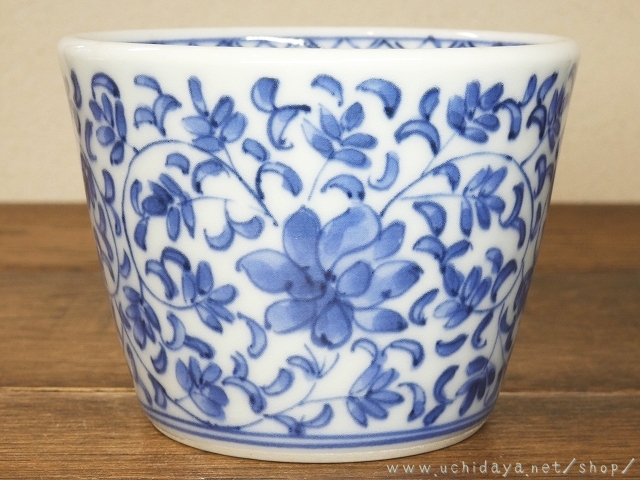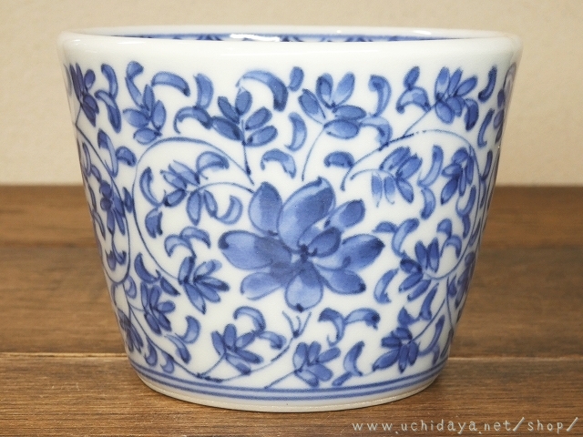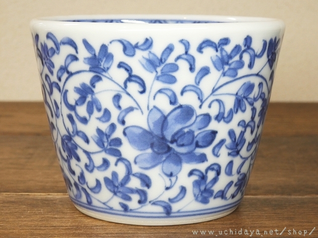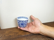 砥部焼の陽貴窯さんの蕎麦猪口(小) 菊唐草です。