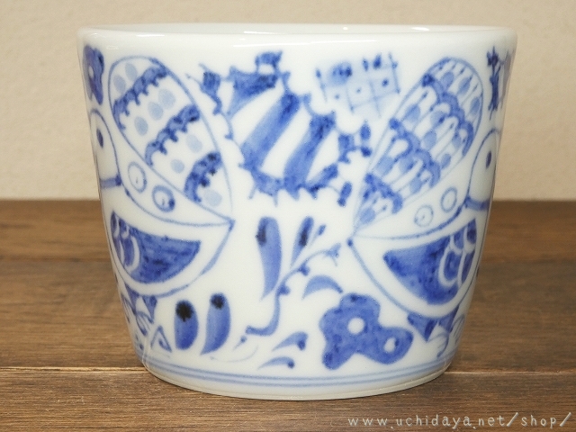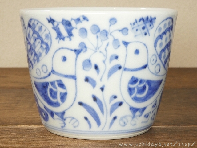 砥部焼の陽貴窯さんの蕎麦猪口 鳥です。