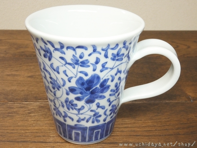 砥部焼の陽貴窯さんのラテマグ 菊唐草 です。